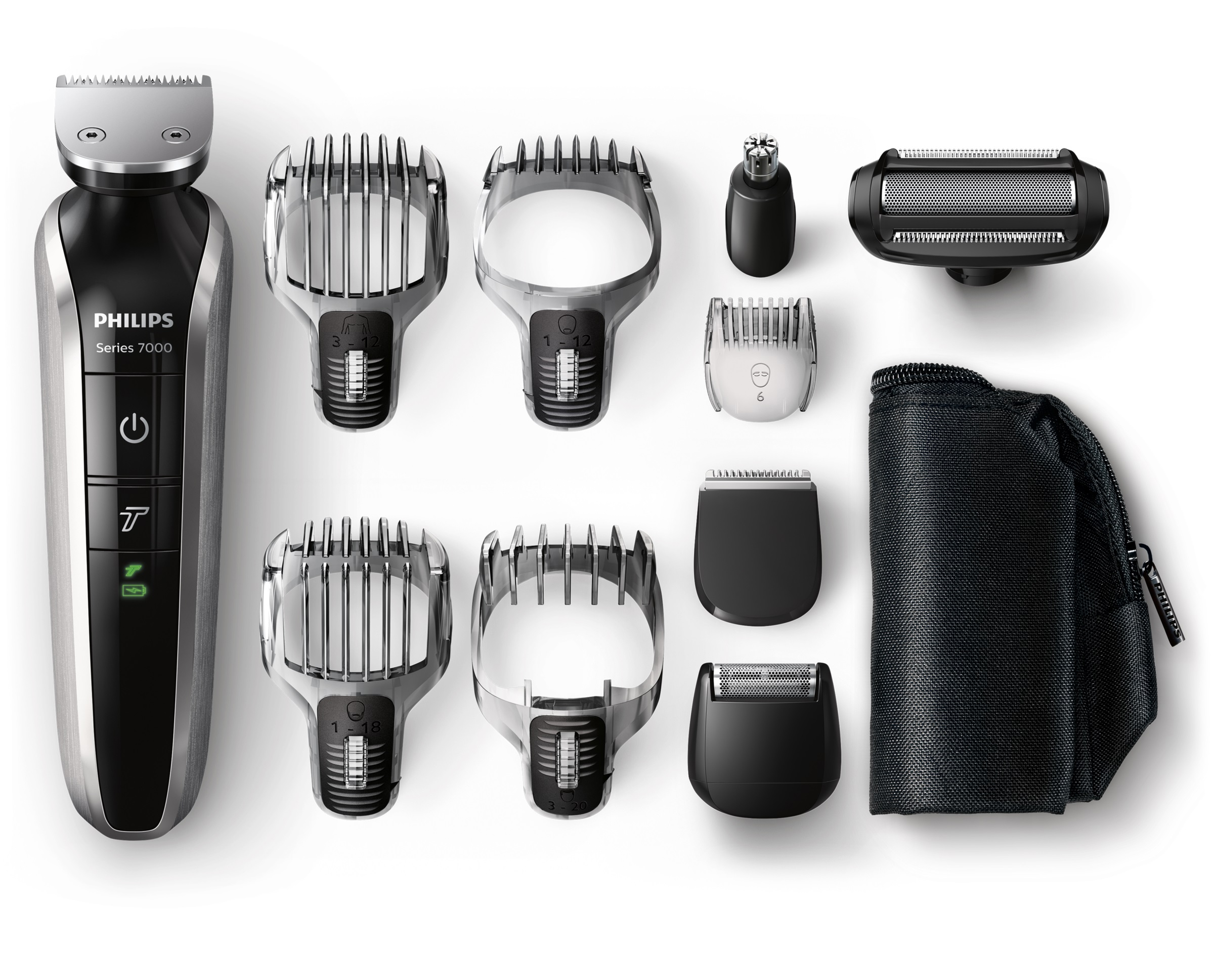 El nuevo multibarbero Philips Serie 7000 ofrece la máxima versatilidad, gracias a sus 10 accesorios te darán libertad para crear estilos distintos de la cabeza a los pies, y la potencia turbo recorta cuidadosamente el pelo más grueso de forma uniforme.