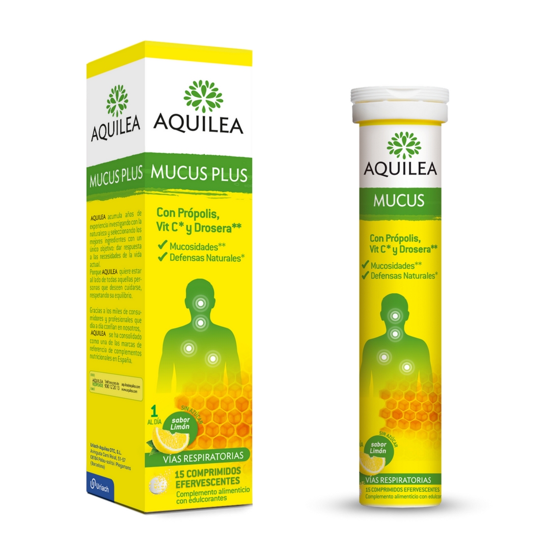 Aquilea Mucus ayuda a mantener la salud de las vías respiratorias y contribuye a mantener el nivel óptimo de mucosidades gracias a la drosera. También contiene Serratiopeptidasa, N-Acetilcisteína, Própolis y Vitamina C, que contribuye al funcionamiento normal del sistema inmunitario y a la protección de las células frente al daño oxidativo.
