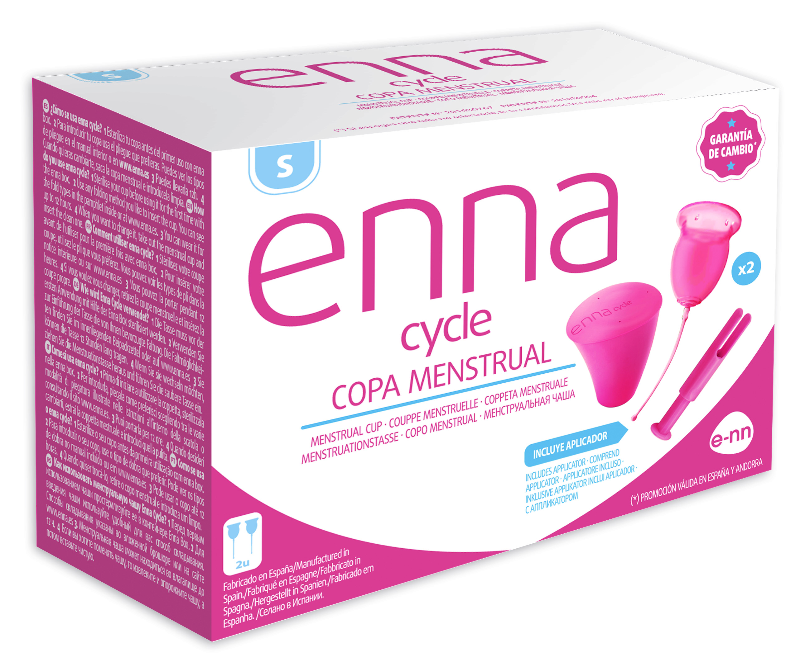 Enna Cycle es la única copa menstrual con aplicador para introducirla más fácilmente. Hilo para saber la perfecta colocación de la copa y encontrar la copa menstrual. Con más capacidad, porque tiene 3 tamaños a elegir según el suelo pélvico y como han quedado las paredes vaginales después del parto. Se puede llevar más de 12 horas seguidas sin cambiarla. Dura hasta 10 años, por lo que es una opción sostenible. Y está protegida bajo 2 patentes: nº 201630767 / nº 201630904.