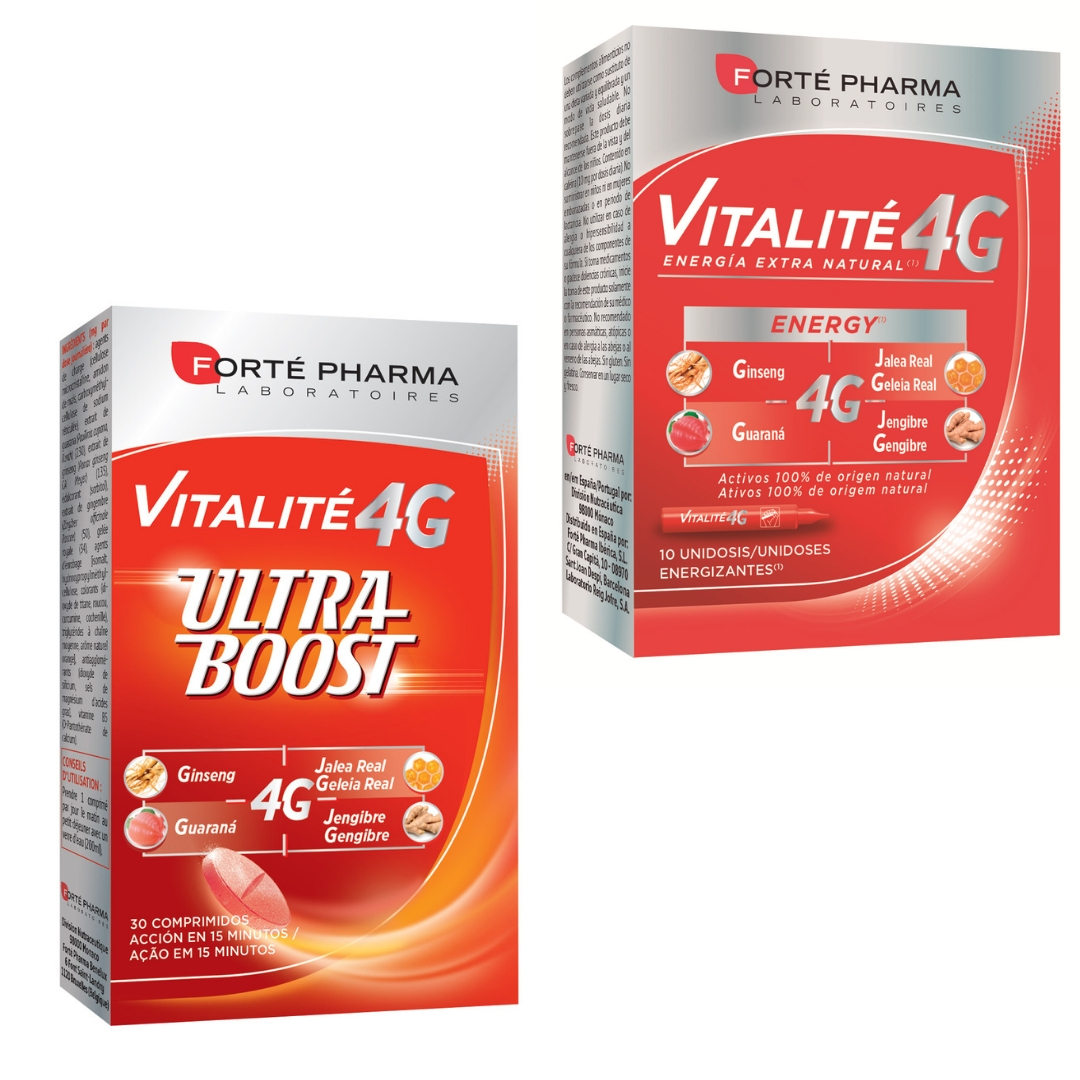 Para casos en los que se requiere un impulso reforzado y más rápido de la energía, los Laboratorios Forté Pharma han formulado Vitalité 4G UltraBoost con una alta concentración en principios activos revitalizantes.