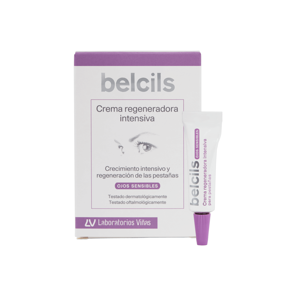 - Belcils Crema Regeneradora intensiva para pestañas, con complejo Biokeratin, un complejo bio-activo que estimula intensamente el crecimiento de las pestañas gracias a la Biotina, estimulador natural de la queratina, y Vitaminas encapsuladas de efecto anti-oxidante, fortalecedor y protector. Resultados: inmediatamente, las pestañas están más brillantes, nutridas y protegidas; en 14 días*, pestañas más fuertes en 80% de los casos, reducción de caída de pestañas en un 75%. Se aplica por la noche con la yema de los dedos.