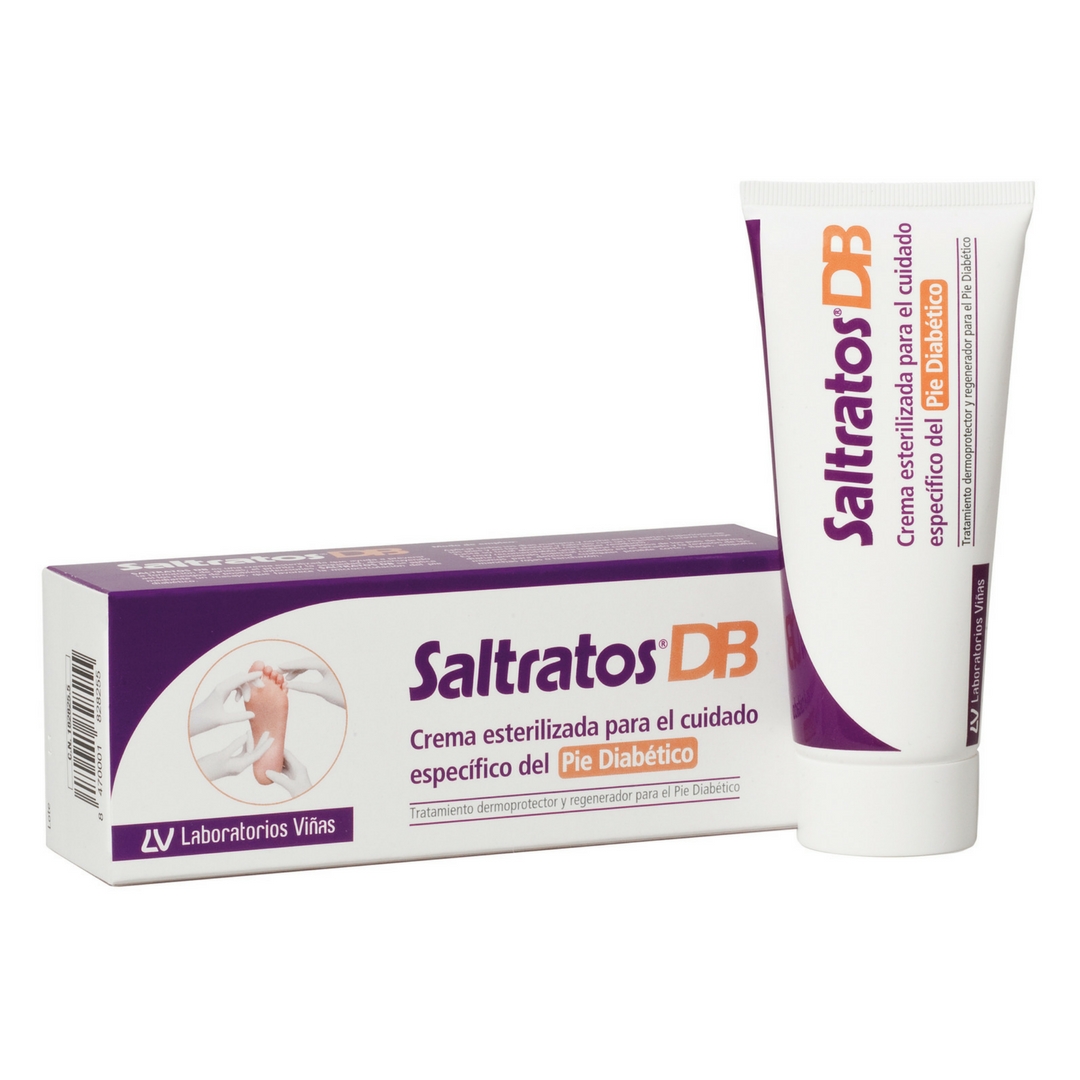 Saltratos DB es una crema esterilizada que ayuda a prevenir la formación de grietas, el prurito y la sequedad, disminuyendo así los riesgos de posibles infecciones. Saltratos DB se aplica mediante un masaje, que favorece la microcirculación del pie diabético.