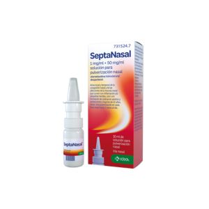 Septanasal 1 mg/ml + 50 mg/ml solución para pulverización nasal, es un medicamento de KRKA sin receta para el alivio de la congestión nasal.