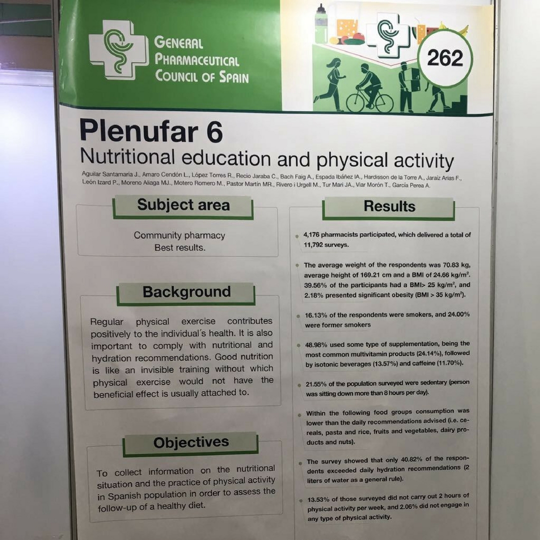 En esta sexta edición de Plenufar (Plan de Educación Nutricional por el Farmacéutico) participaron 4.176 farmacéuticos de toda España, quienes durante los meses de abril, mayo y junio de 2017 ofrecieron educación nutricional en la actividad física a los usuarios que acudían a las farmacias comunitarias participantes. Los objetivos eran, por un lado, formar a los millones de españoles que realizan algún tipo de actividad o ejercicio físico, para llevar a cabo una adecuada alimentación acorde a sus necesidades, y por otro, recoger información sobre la situación nutricional y la práctica de actividad física en la población española.