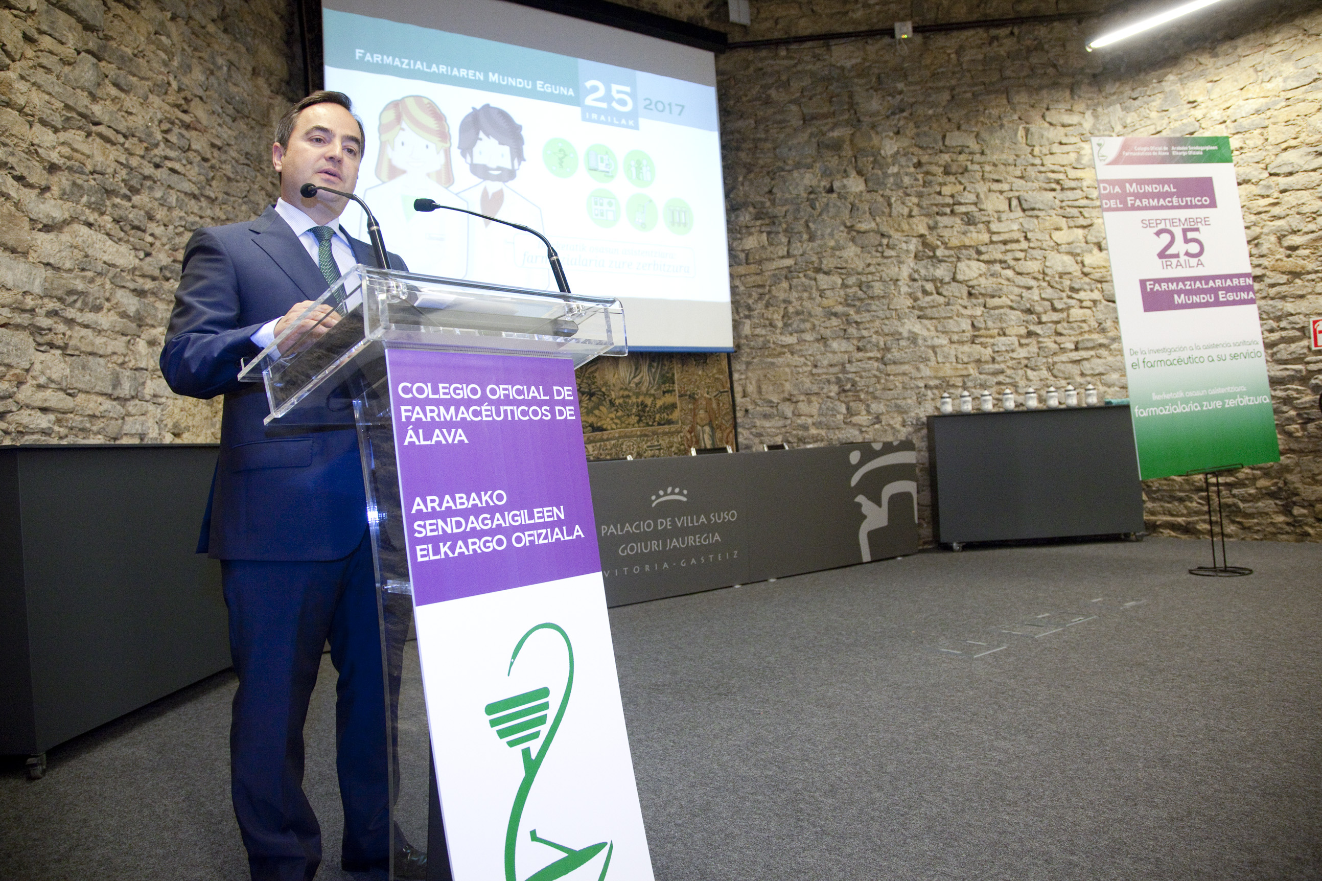 El Colegio Oficial de Farmacéuticos de Álava compartió la celebración del Día Mundial del Farmacéutico con numerosos profesionales y diversos representantes de la sociedad alavesa