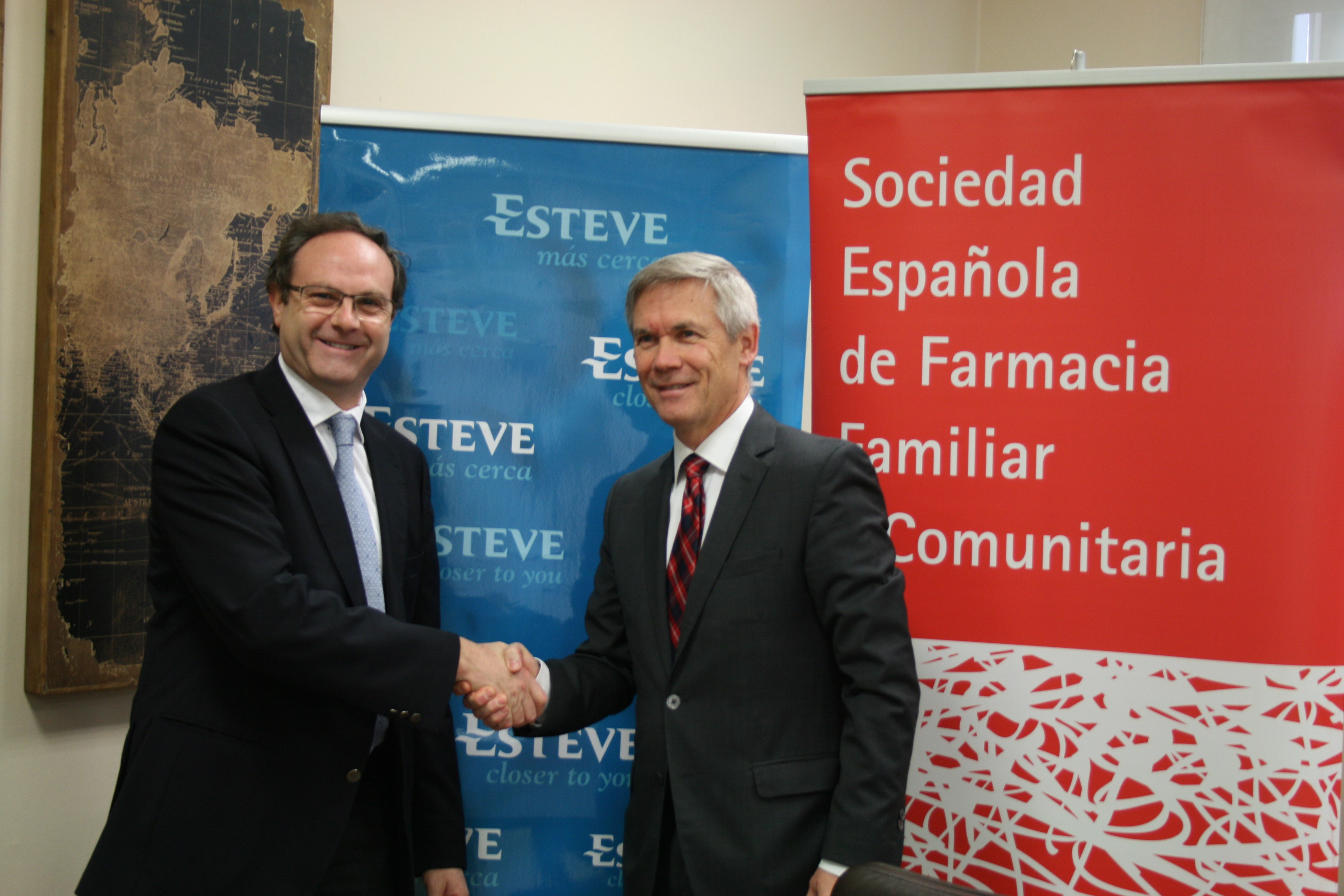 ESTEVE y la Sociedad Española de Farmacia Familiar y Comunitaria (SEFAC) han firmado un convenio mediante el cual ambas entidades colaborarán en el desarrollo de un programa de actividades para el fomento e implantación de un plan de adherencia terapéutica en farmacia comunitaria durante los dos próximos años. El acuerdo ha sido rubricado por Jesús C. Gómez, presidente de SEFAC; Eugeni Sedano, director de Relaciones Institucionales de ESTEVE; y Joe Sullivan, director general de ESTEVE Farma.
