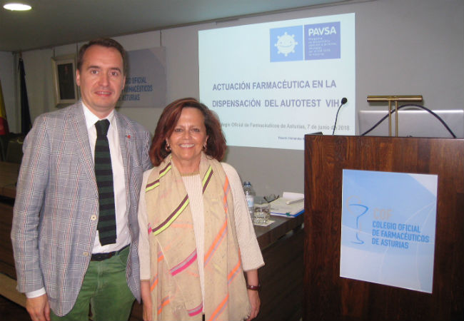 El Colegio Oficial de Farmacéuticos de Asturias ha organizado el curso Actuación farmacéutica en la dispensación del autotest del VIH que han impartido Juan Roces, secretario del Colegio Oficial de Farmacéuticos de Asturias y Rosario Hernández, del Servicio de Evaluación de la Salud y Programas Dirección General de Salud Pública.