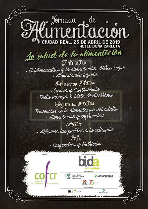 Una jornada que organiza el COF de Ciudad Real con el patrocinio de Bidafarma, Consejo General de Colegios Farmacéuticos de España, Arkopharma y Grupo Cofares, y la colaboración de Cinfa y Microcaya.