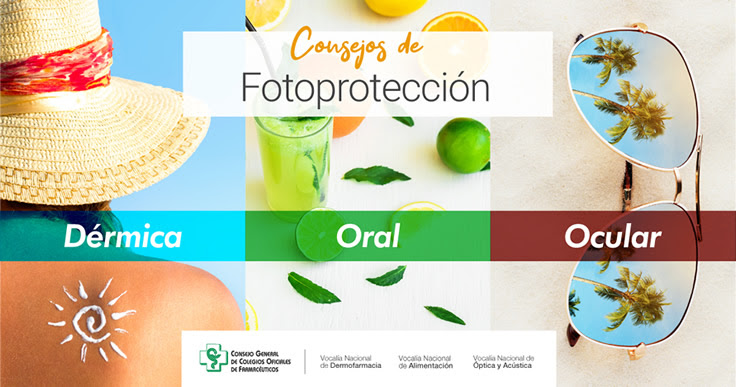 Las vocalías de Alimentación, Dermofarmacia y Óptica del Consejo General de Colegios Oficiales de Farmacéuticos han unido sus fuerzas para sensibilizar a la población través de las farmacias sobre los peligros de una exposición inadecuada al sol, tanto para nuestra piel como para los ojos. La prevención se presenta como la mejor arma para protegernos del sol, sin embargo las cifras siguen alertando de la necesidad de continuar con la labor divulgativa que viene desarrollando las farmacias. Todo ello con el fin de evitar la aparición de quemaduras solares, manchas cutáneas, envejecimiento cutáneo prematuro y aparición de cáncer de piel. En el caso de los ojos el sol puede provocar daños sobre la retina, como degeneración macular; la córnea, con la aparición de queratitis; o la conjuntiva, provocando conjuntivitis, entre otros.