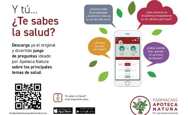 ¿Cómo hacerlo? es muy fácil: primero, descarga la aplicación para IOS o para Android y, para comprobar tus conocimientos, tienes la posibilidad de invitar a tus amigos a participar y desafiarles para descubrir quién sabe más sobre temas de salud y estilos de vida. Posteriormente puedes compartir los resultados en Facebook y Twitter. El equipo de expertos de Apoteca Natura actualizará constantemente esta aplicación con nuevas categorías de juego y preguntas.