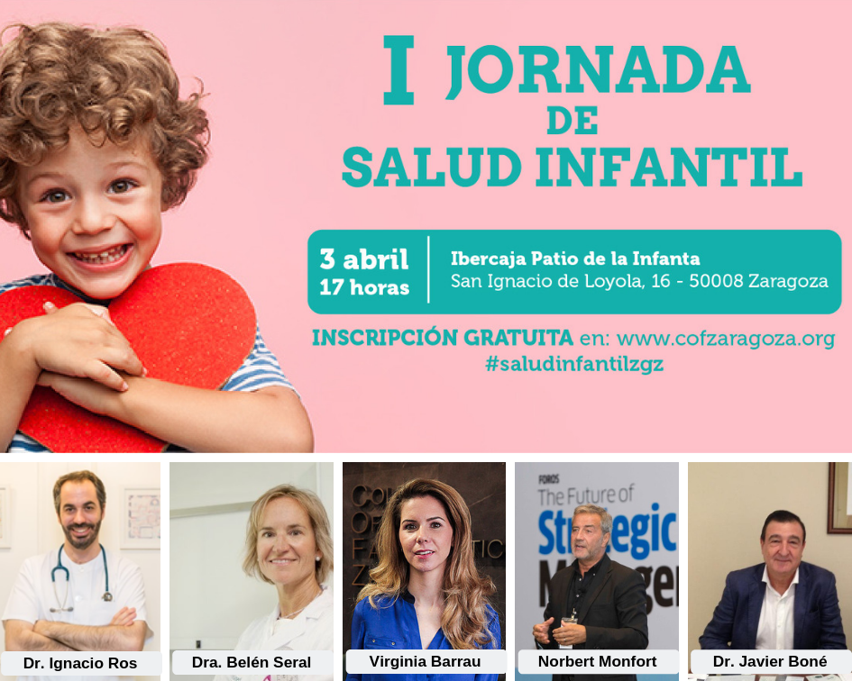 Estas son algunos de los temas que se abordarán en la I Jornada de Salud Infantil organizada por el Colegio Oficial de Farmacéuticos de Zaragoza y que se llevará a cabo el miércoles, 3 de abril, en el Patio de la Infanta de Ibercaja de 17 a 21 h. Las inscripciones a la jornada son totalmente gratuitas y deben realizarse en la web del Colegio.