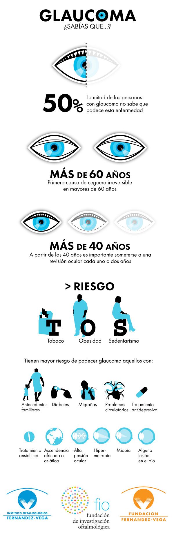 Más de 60 millones de personas sufren glaucoma en el mundo, una enfermedad que afecta al nervio óptico, generalmente por acumulación de fluido en la parte anterior del ojo que aumenta la presión intraocular y puede afectar gravemente a la visión e incluso llegar a la ceguera si no es tratado. No obstante, en la mayor parte de los casos, la pérdida de visión puede ralentizarse si la enfermedad se trata a tiempo, explica el profesor Luis Fernández-Vega, director médico del Instituto Oftalmológico Fernández-Vega, quien destaca la importancia de “tener un hábito de vida saludable y evitar el consumo de tabaco, obesidad y el sedentarismo, pues aumentan el riesgo de desarrollar glaucoma, primera causa de ceguera irreversible en personas mayores de 60 años”.