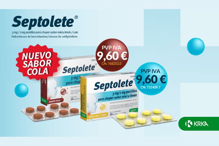 En este contexto, opciones OTC como Septolete® (bencidamina + CPC) aportan un enfoque completo: acción analgésica, antiinflamatoria y antiséptica. Además, disponer de sabor miel- limón y el nuevo sabor cola ideal para un público más joven.