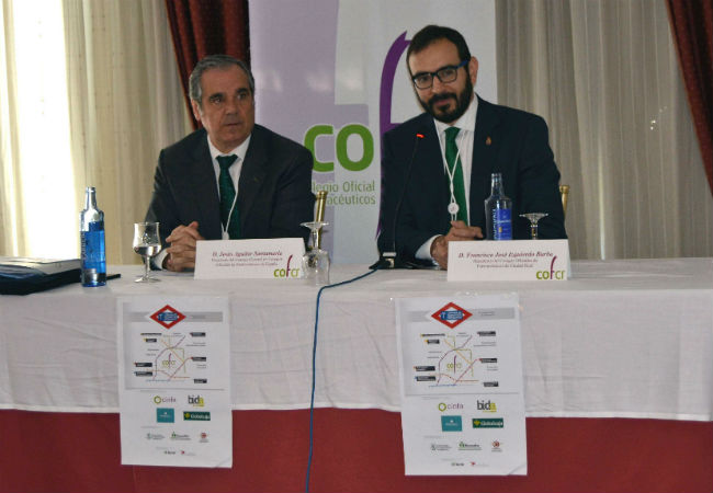 El presidente del Consejo General de Colegios Oficiales de Farmacéuticos (CGCOF) de España, Jesús Aguilar, acompañado por Francisco Izquierdo, presidente del COF Ciudad Real, inauguraron la jornada.