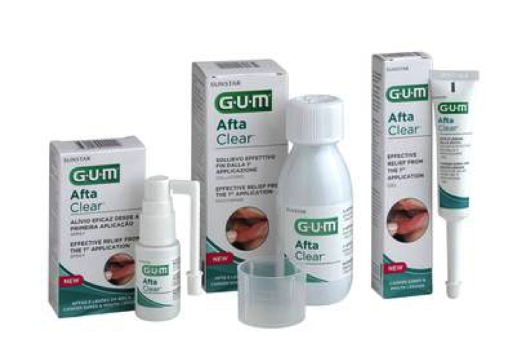 Sunstar GUM®, marca especializada en el cuidado de las encías con más soluciones para cada problema bucal y de venta en farmacias y parafarmacias, cuenta con GUM® AftaClear, una gama especializada en el tratamiento de las úlceras y lesiones bucales. El tratamiento está elaborado con ácido hialurónico y contiene unos potentes muchoadhesivos formados por mucosave, resultante de una mezcla de extractos de hierbas, PVP y policarbophyl. Esta mezcla de ingredientes crea una película protectora sobre la lesión y la mantienen fijada sobre la herida durante más tiempo, resistiendo al flujo de saliva y a agresiones externas.